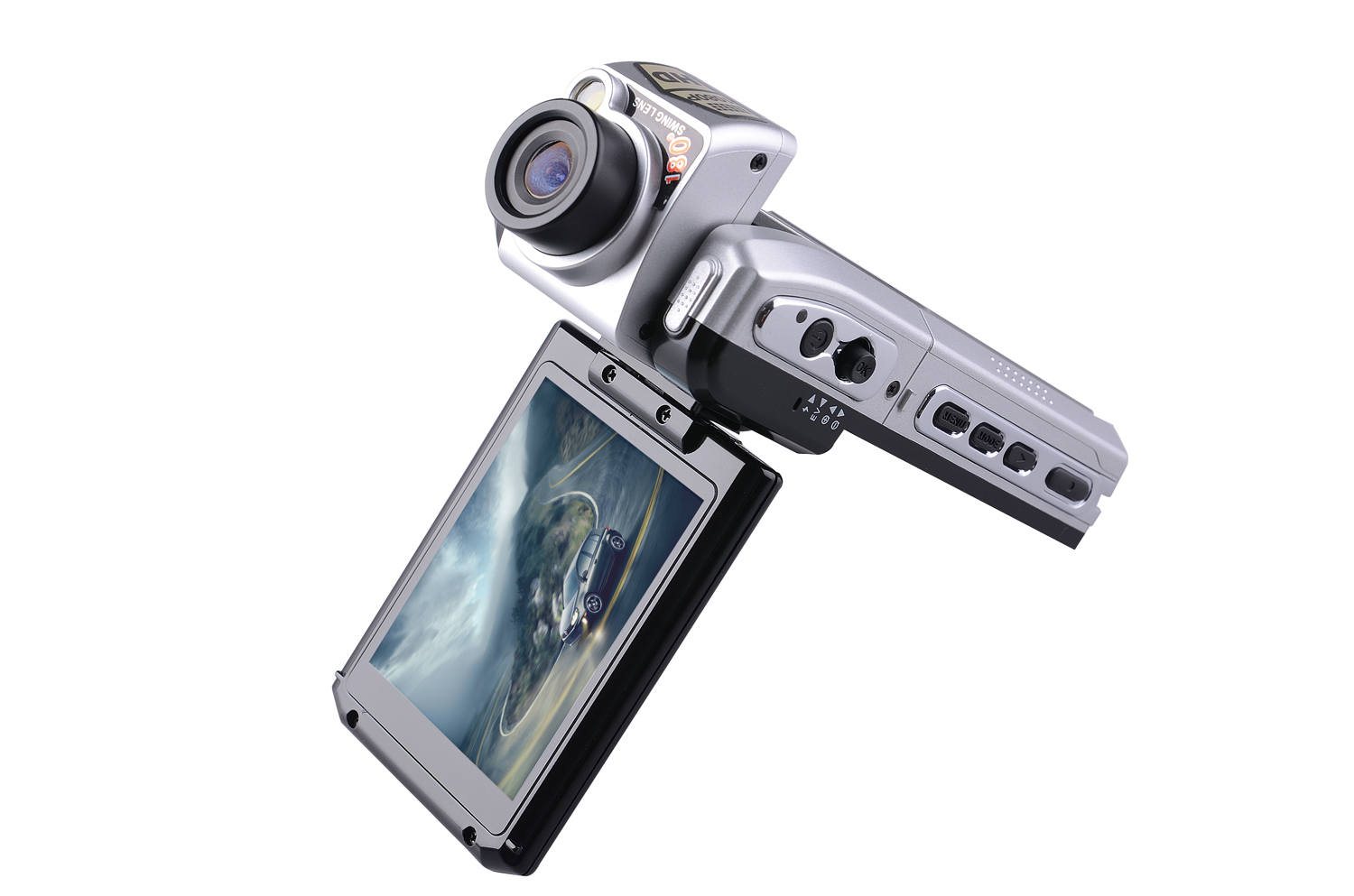 * Ultra-small size, dual lens front and back of vehicle with high definition, the front lens can rotate frontwards and backwards for 180 degree. The back lens can be place inside vehicle and at the license plate, which facilitates the video shooting from multi-angles in various occasions to get a video with high resolution. * 1/4 inch internal photosensitive elements with low noise and high picture quality, which can capture ultra -clear pictures in relatively dark occasion * External connected one rearview lens which noise is low and photosensitivity is high, which enables that the situation in front and at the back of vehicle can be recorded at the same time of that video shooting is carried out by using front lens. * LCD screen can be rotated for 270 degree, and the image can be adjusted automatically, which allows you to view video at any angle. * Internal lithium polymer battery, which enables video shooting being carried out while it is being charged. * Internal microphone / speaker * Support SDcard with high capacity * Turn it on and start video shooting function automatically as the vehicle starts * Delay starting function, which can prevent it from damage caused by pulse current occurred at the moment of vehicle starting. * GPS scanning and positioning, travelling track restoring, which makes everything is under control. * Gravity Sensor * Video encryption protects user's privacy by setting password. * Internal highlight LED, used for light supplement and ligtening.