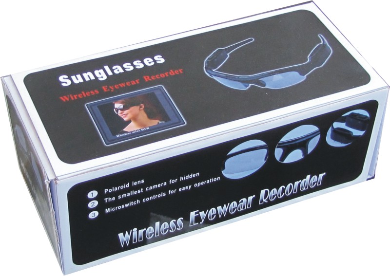 First glasses with both wireless transmission & local DV record,photo function. Wireless transmits 200 meters,power 100mW. Quality Polaroid lens form brand makers. Friendly user operation buttons for easy control. With memory slot for TF/Micro SD card. Easy connection with PC/laptops,no driver needed. Supports 2G-16GB SD card for as long as 5 hours video recording. Sleek and elegant design suits for both men and women users. Real time recording,never let memorable moments sneak away from life. A must equipment and highly recommended device for journalist,traffic police,travelers,etc. SPECIFICATION: